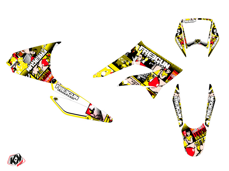 Avec des graphismes issus de la célèbre marque de boxers streetwear, la gamme de kit déco FREEGUN Freegunman donnera un style unique et tendance à votre 50cc Derbi Xtreme.