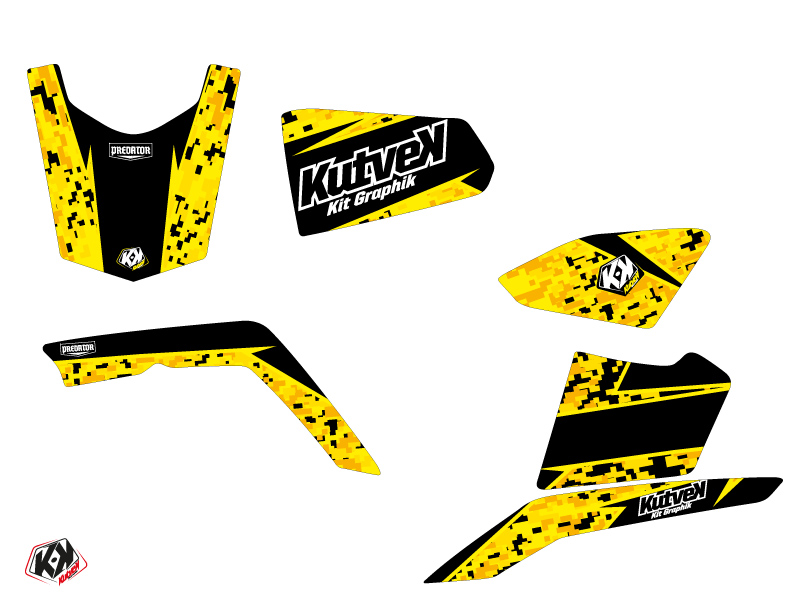 Offer you now for your Suzuki King Quad 400 ATV a graphic kit on the colors and brand name of PREDATOR Black Yellow.