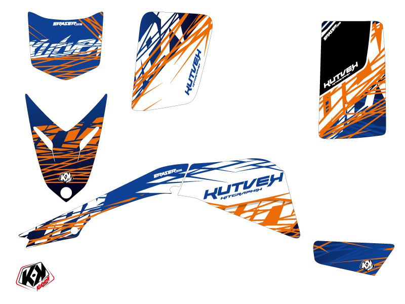 Offer you now for your Yamaha Blaster ATV a graphic kit on the colors and brand name of ERASER Blue Orange.