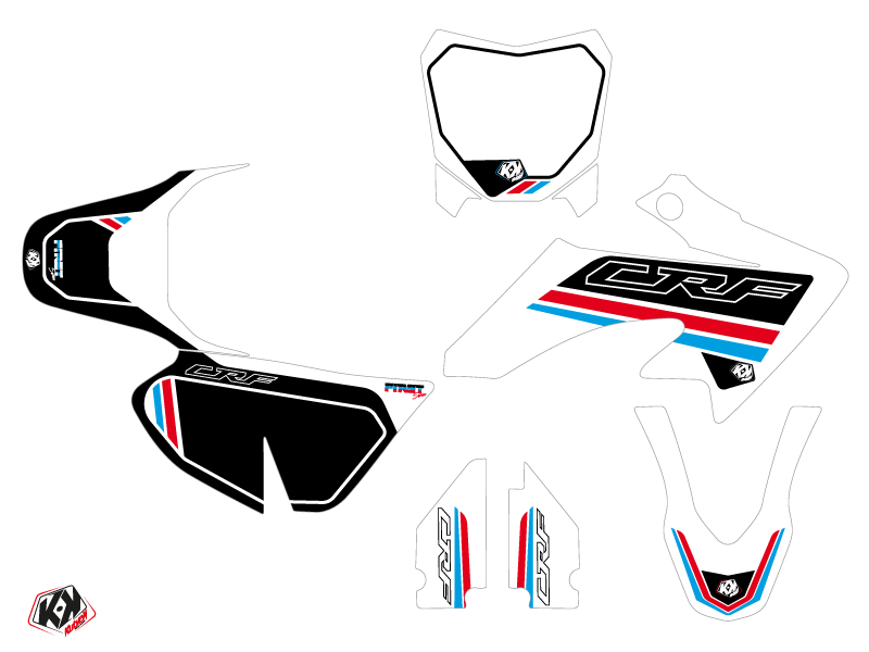 Offer you now for your Honda 50 CRF Dirt Bike a graphic kit on the colors and brand name of FIRST White.