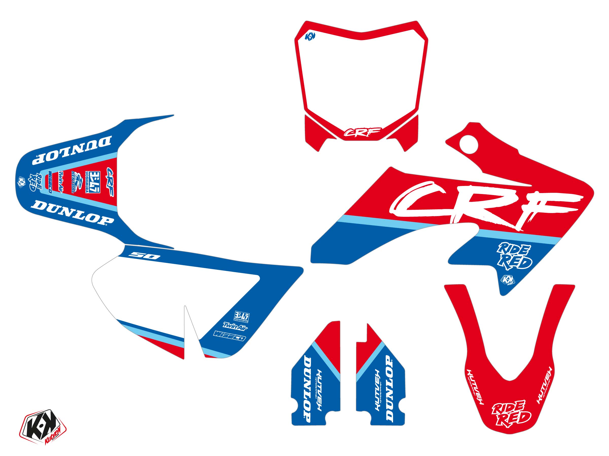 Offer you now for your Honda 50 CRF Dirt Bike a graphic kit on the colors and brand name of RASK Blue.