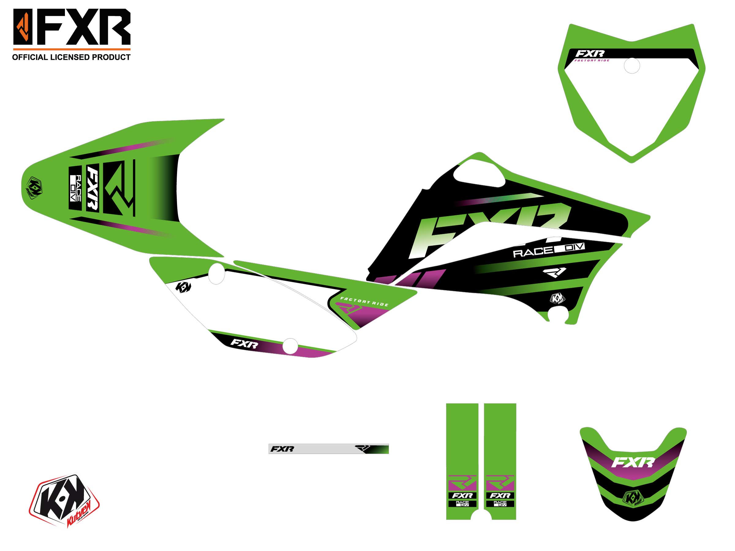 Offer you now for your Dirt Bike KAWASAKI KLX 110 a graphic kit on the colors of FXR REVO Green design.