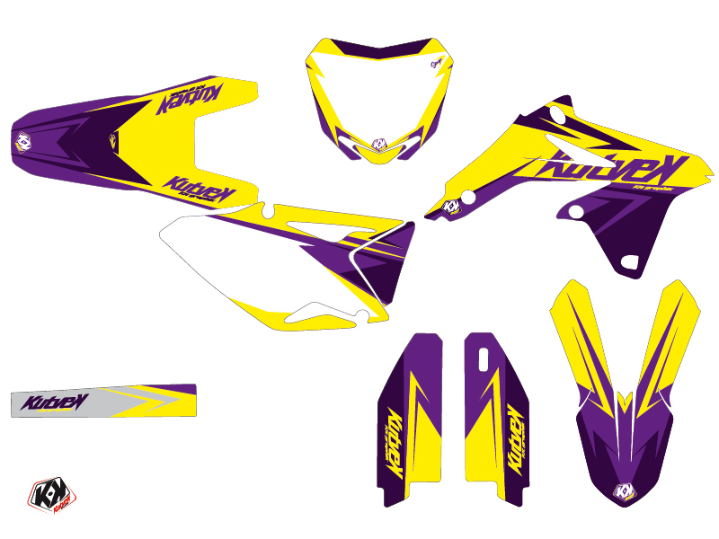 Offer you now for your Suzuki 450 RMZ Dirt Bike a graphic kit on the colors and brand name of STAGE Yellow Purple.