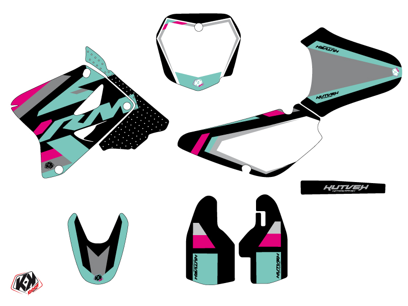 Offer you now for your Suzuki 85 RM Dirt Bike a graphic kit on the colors and brand name of LABEL Turquoise.