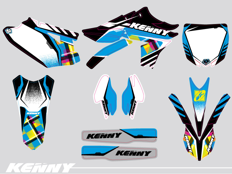 Offer you now for your Dirt Bike Yamaha 250 YZF a graphic kit on the colors and brand name of KENNY.