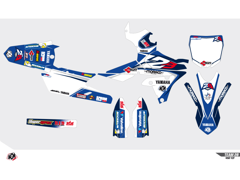The graphic kit REPLICA TEAM 2B 2015 allow you to adopt the colors of professional racing riders to your Dirt Bike Yamaha 250 YZF.