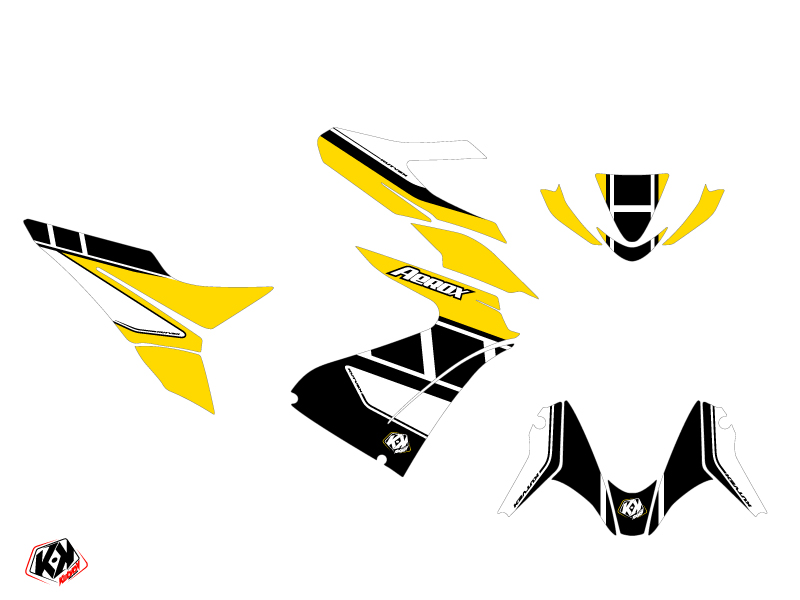 Offer you now for your Yamaha Aerox Scooter a graphic kit on the colors and brand name of VINTAGE Yellow.