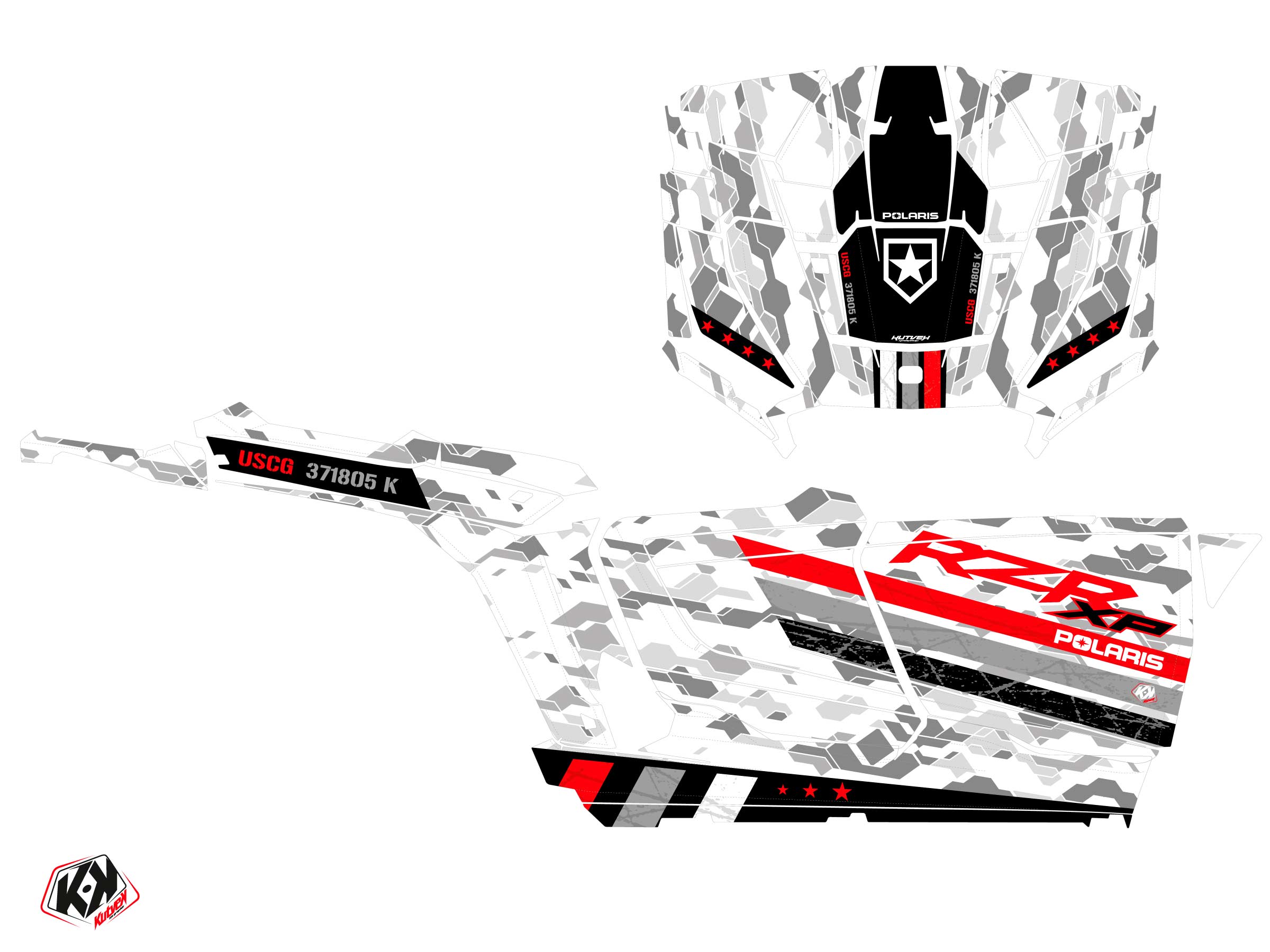 Offer you now for your UTV POLARIS RZR XP 4 PORTES a graphic kit on the colors of FORCE White design.