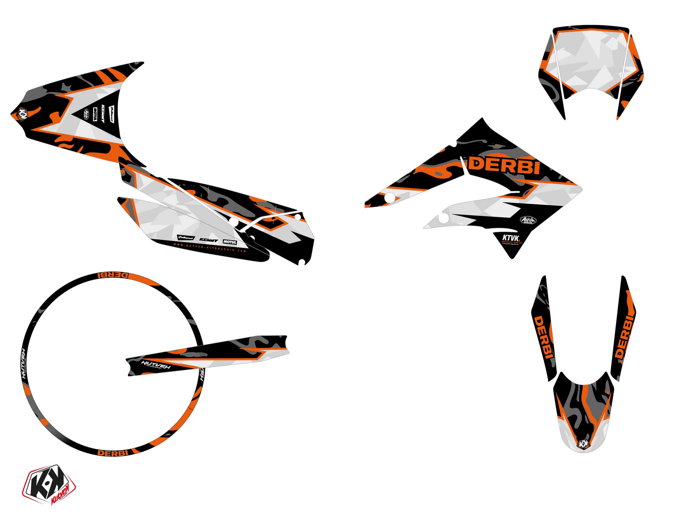 Offer you now for your 50CC DERBI SENDA XTREME a graphic kit on the colors of Barbarian Orange design.