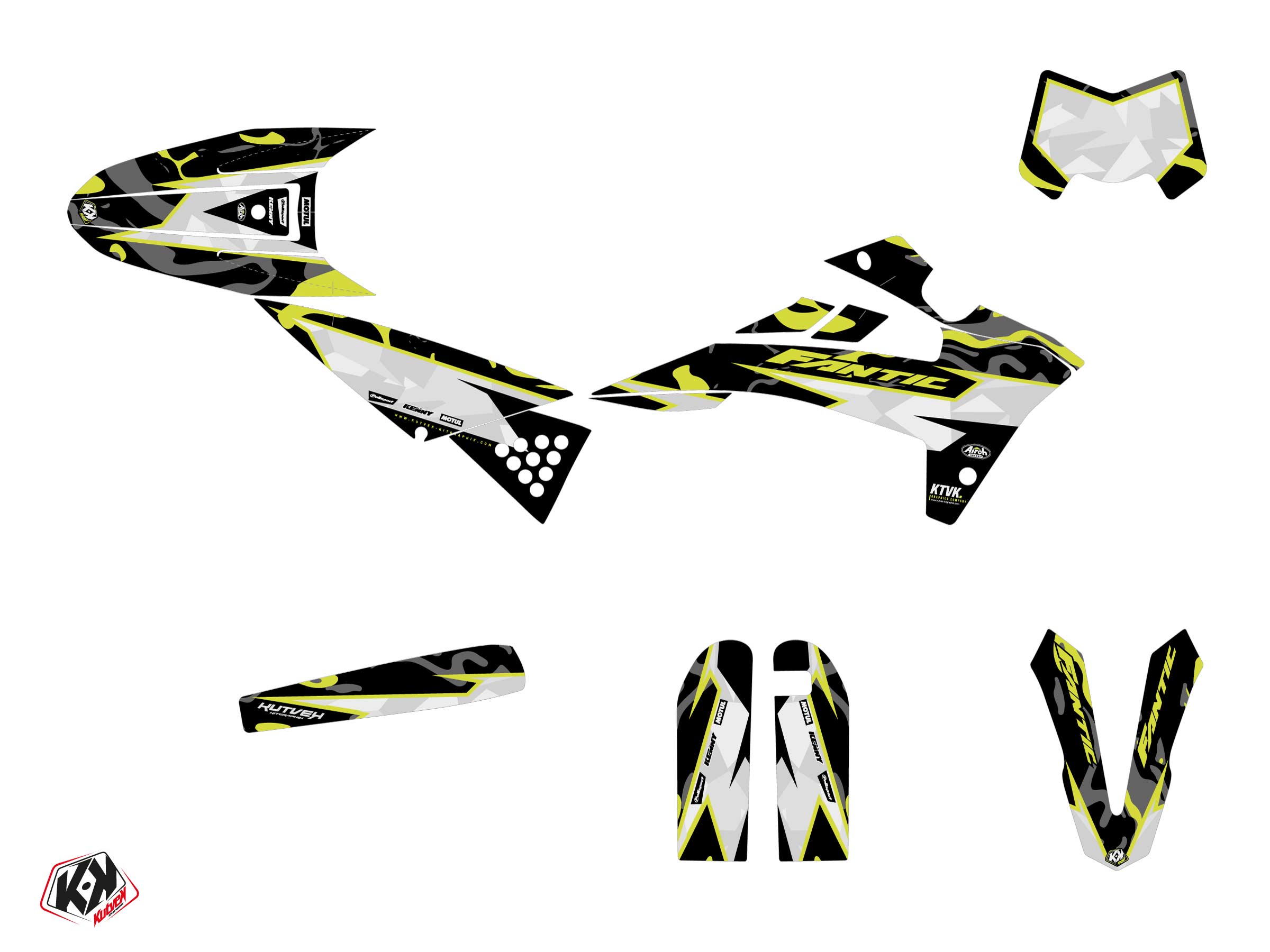 Offer you now for your 50CC FANTIC XM 50 a graphic kit on the colors of Barbarian Yellow-Neon design.