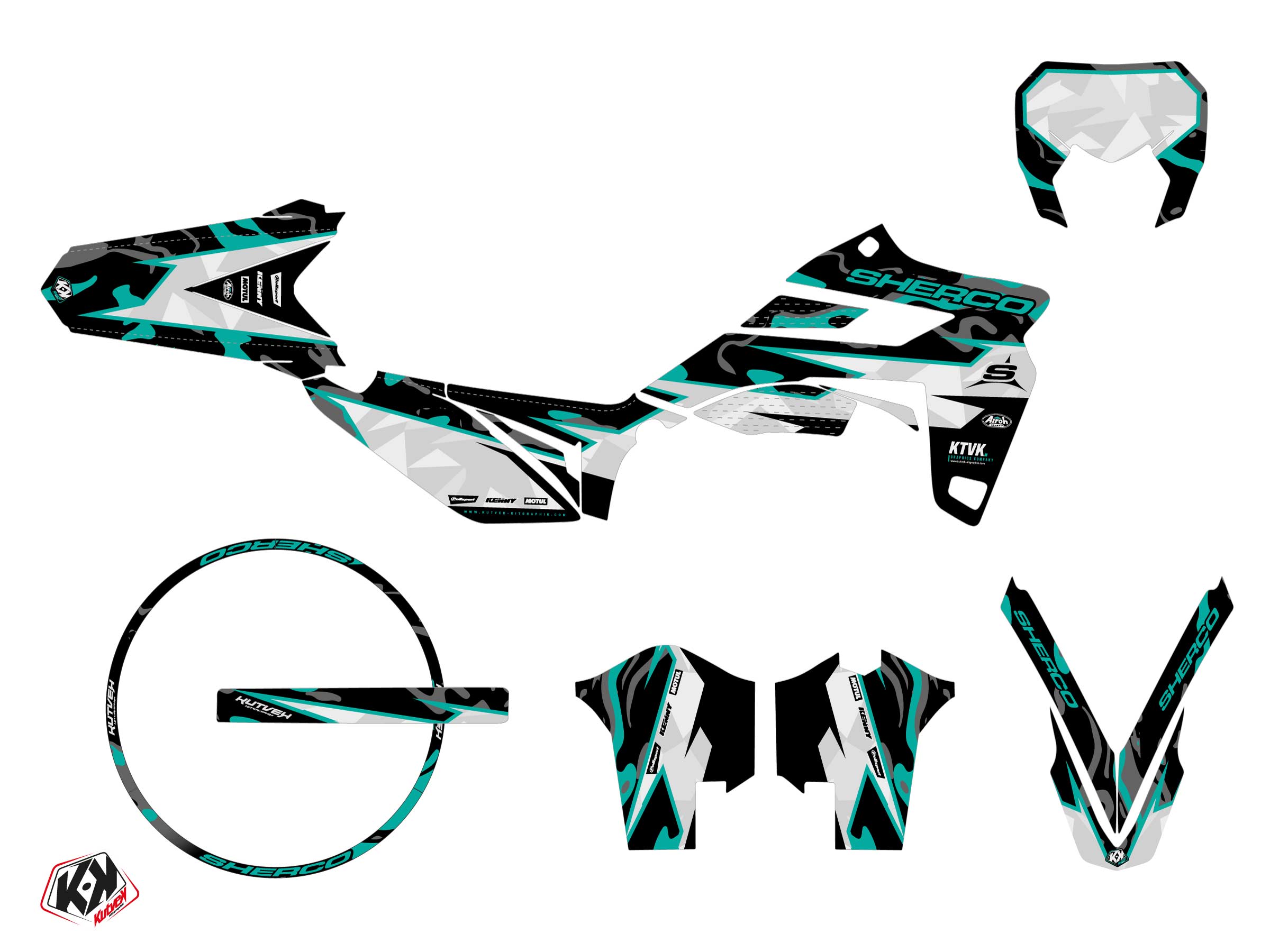 Offer you now for your 50CC SHERCO SM RS a graphic kit on the colors of Barbarian Turquoise design.