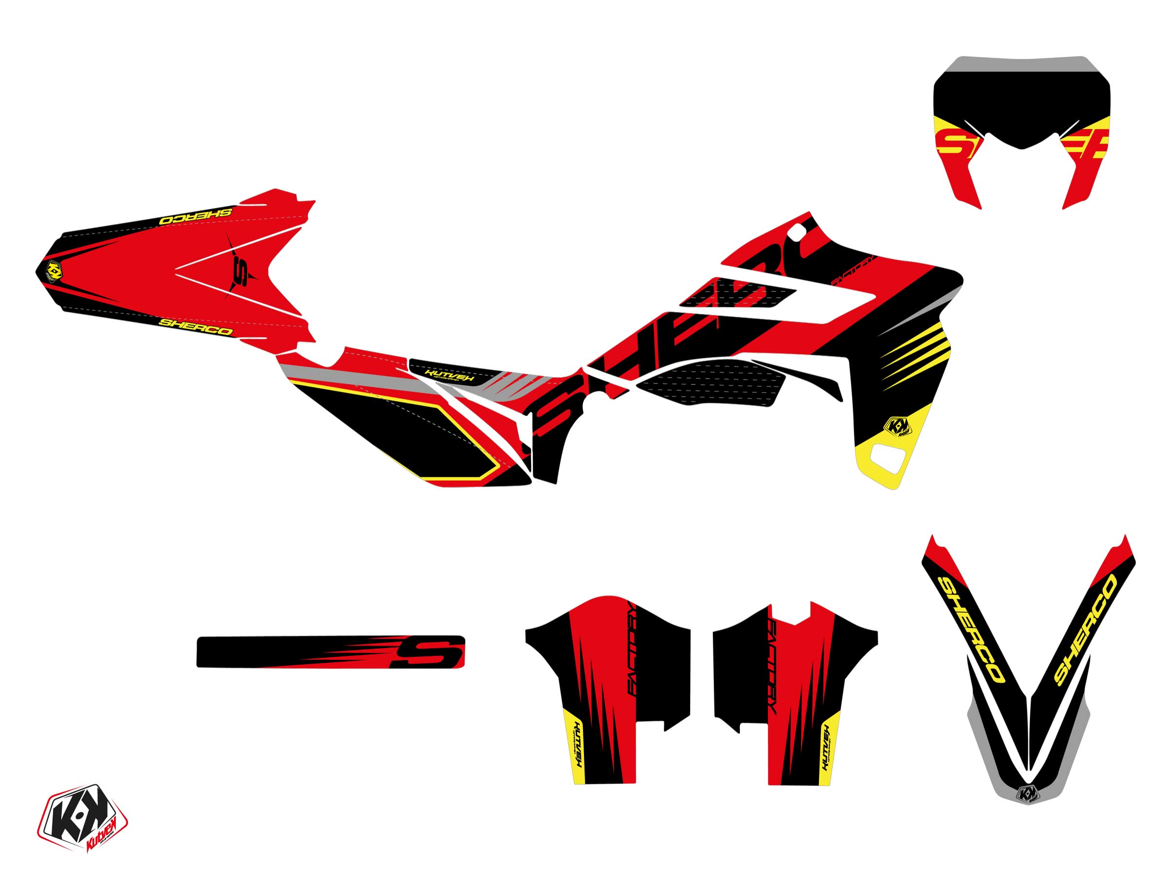 Offer you now for your Sherco SM 50 50cc a graphic kit on the colors and brand name of Fast Red.