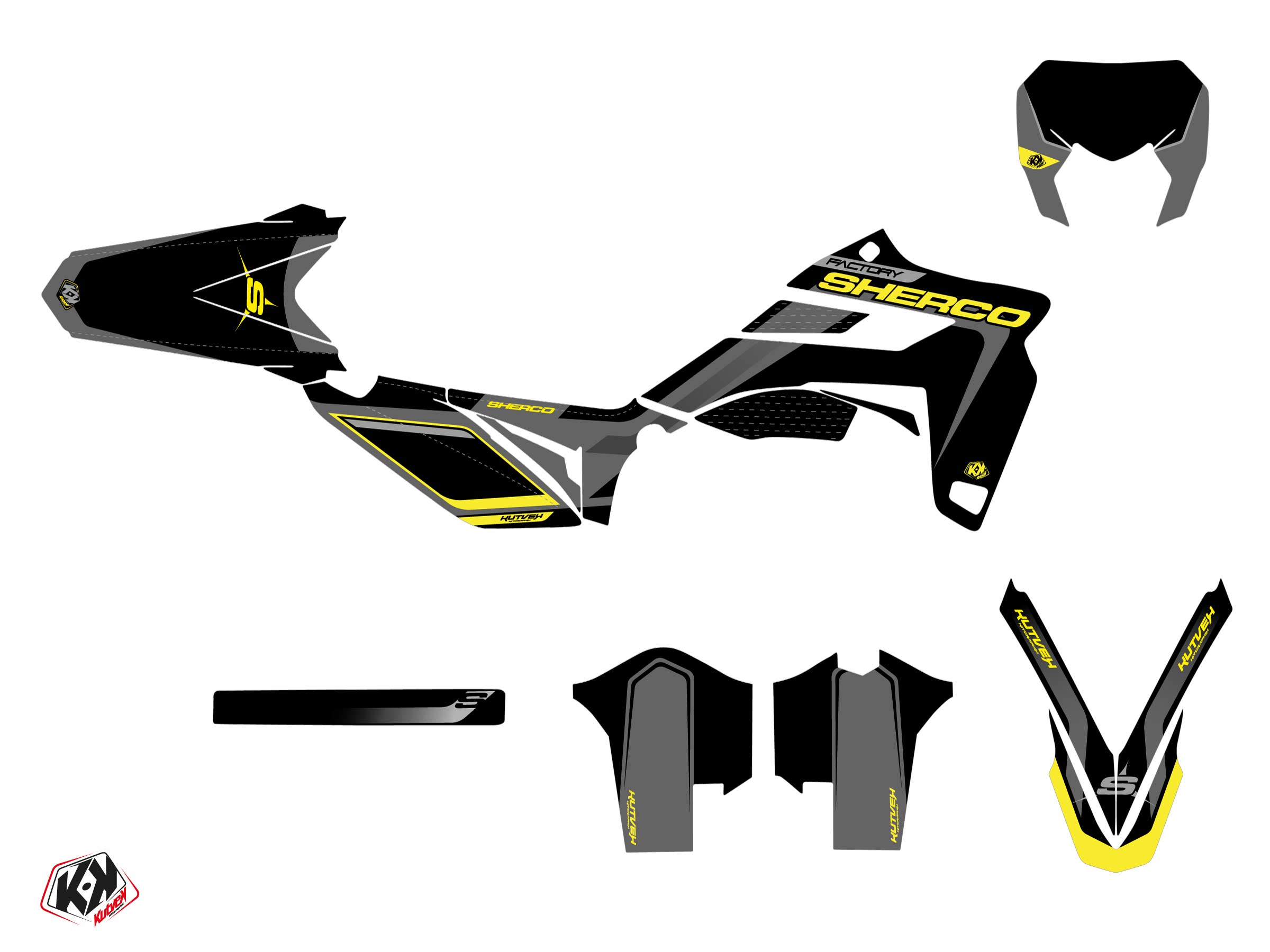 Offer you now for your Sherco SM 50 50cc a graphic kit on the colors and brand name of SKRATCH Black.