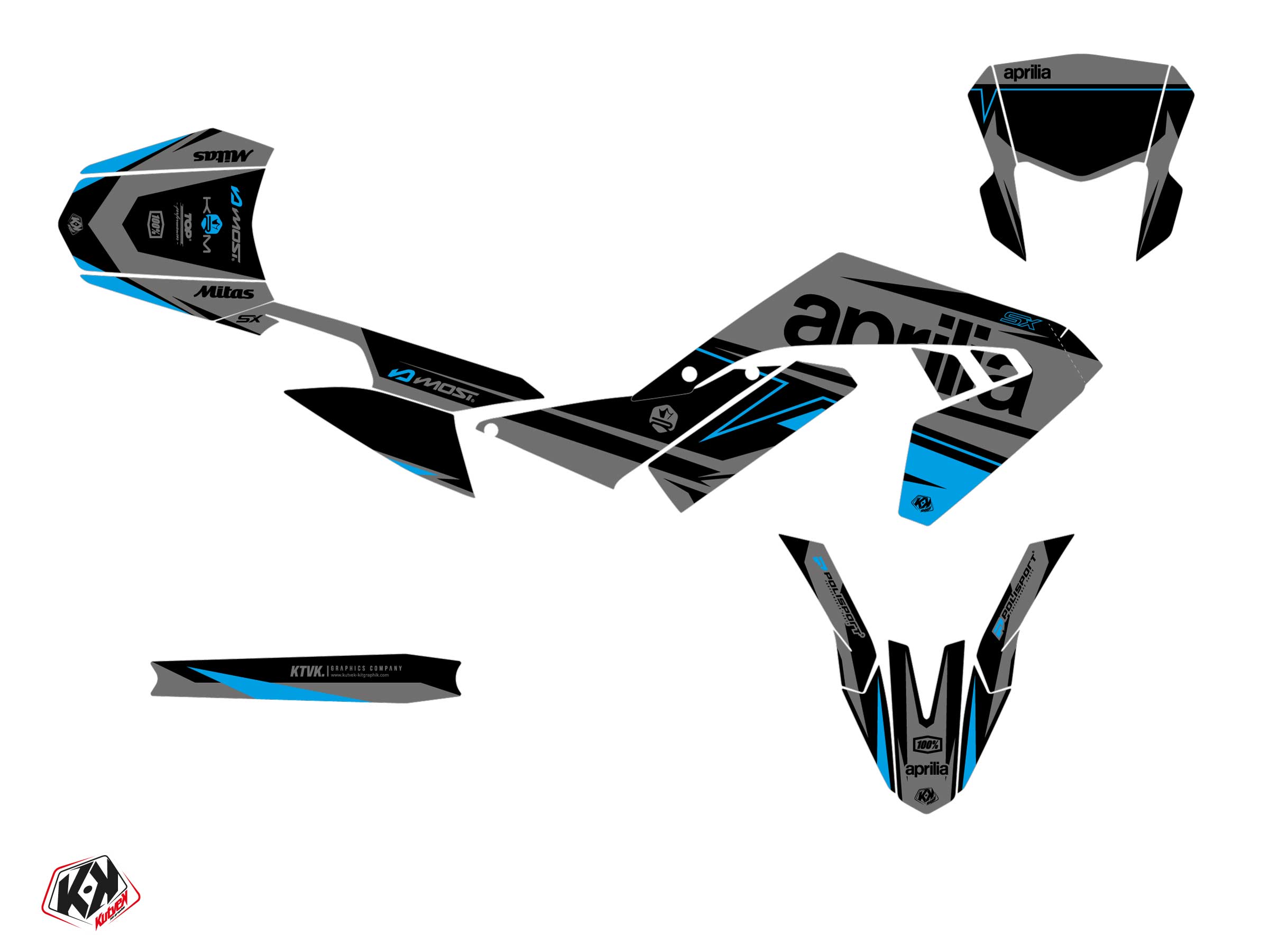The APRILIA SX 50 graphic kit includes :