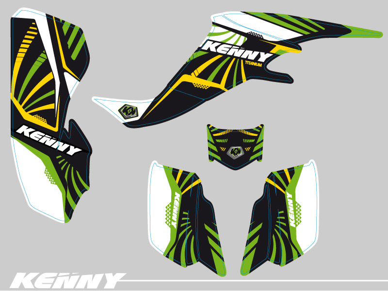 Offer you now for your ATV Kawasaki 400 KFX a graphic kit on the colors and brand name of KENNY.