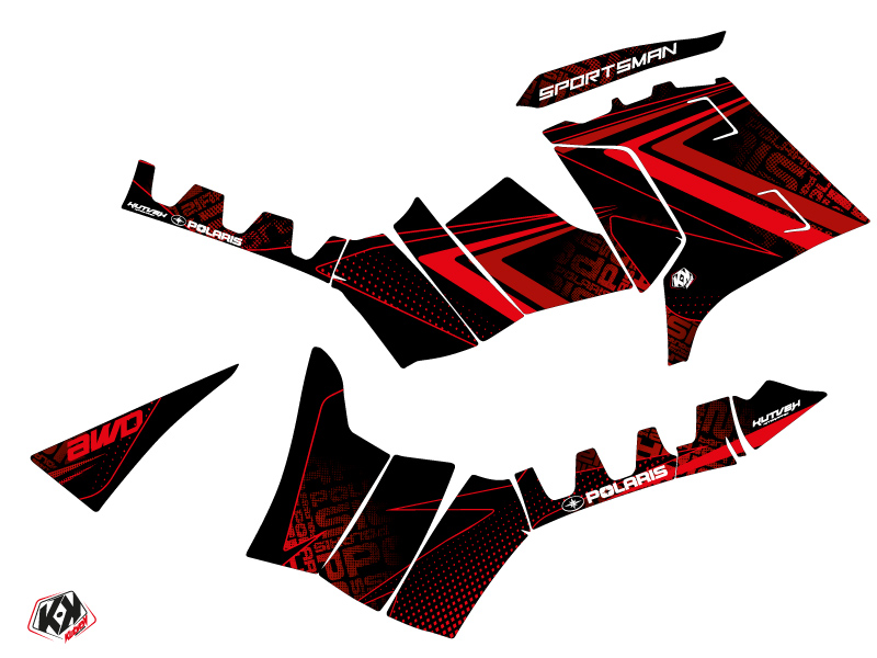 Offer you now for your Polaris 550-850-1000 Sportsman Forest ATV a graphic kit on the colors and brand name of ROCK Black Red.