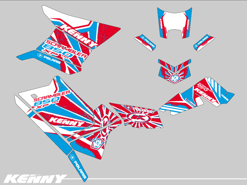 Offer you now for your ATV Polaris Scrambler 850-1000 XP a graphic kit on the colors and brand name of KENNY Patriot.