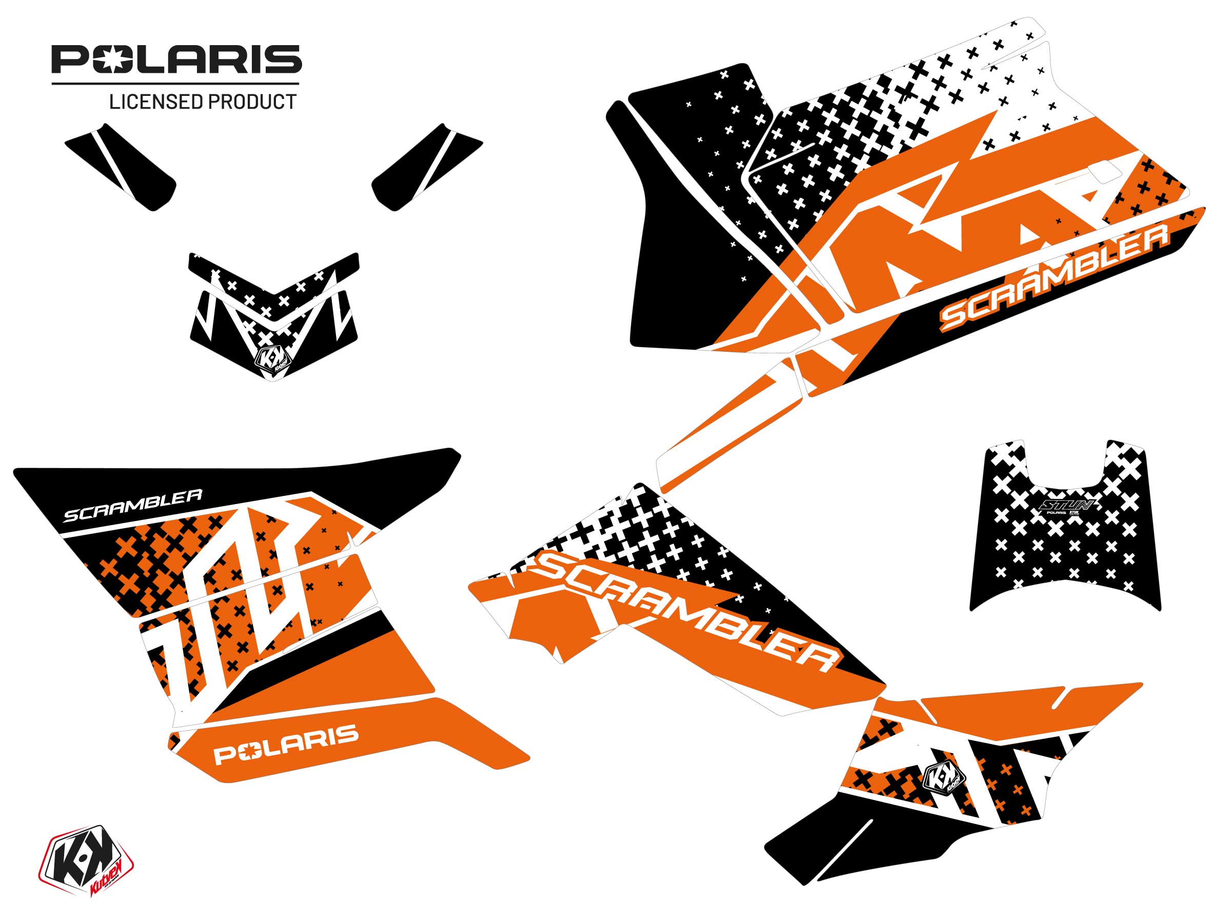Offer you now for your Polaris Scrambler 850-1000 XP ATV a graphic kit on the colors and brand name of Stun White.
