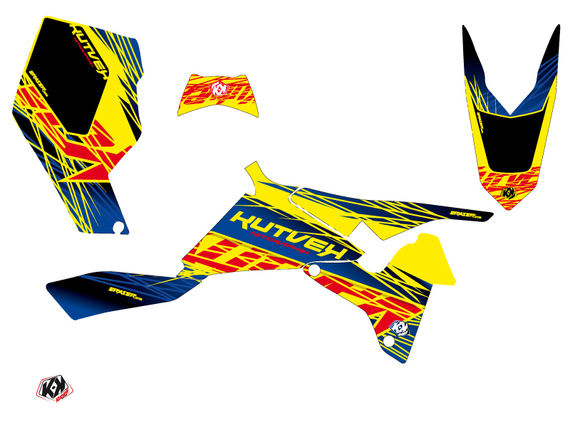 Offer you now for your Suzuki 450 LTR ATV a graphic kit on the colors and brand name of ERASER Blue Yellow.