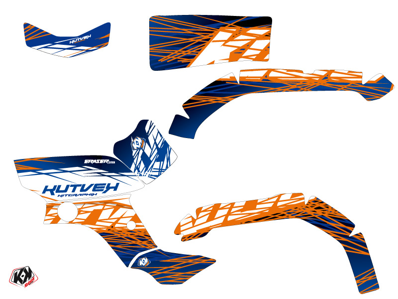 Offer you now for your Yamaha 350 Grizzly ATV a graphic kit on the colors and brand name of ERASER Blue Orange.