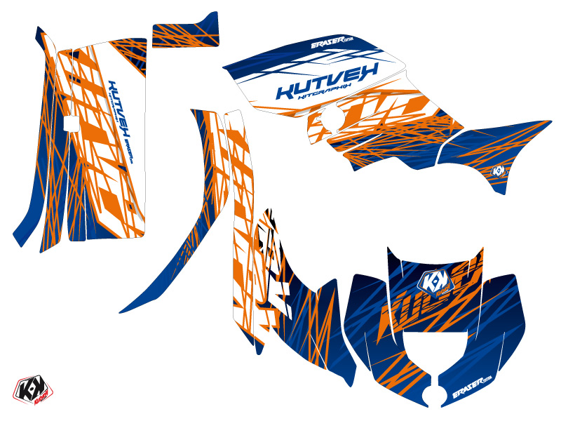 Offer you now for your Yamaha 450 Grizzly ATV a graphic kit on the colors and brand name of ERASER Blue Orange.