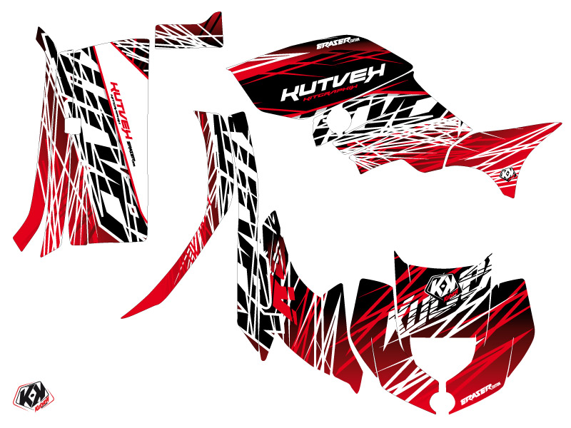Offer you now for your Yamaha 450 Grizzly ATV a graphic kit on the colors and brand name of ERASER Red White.