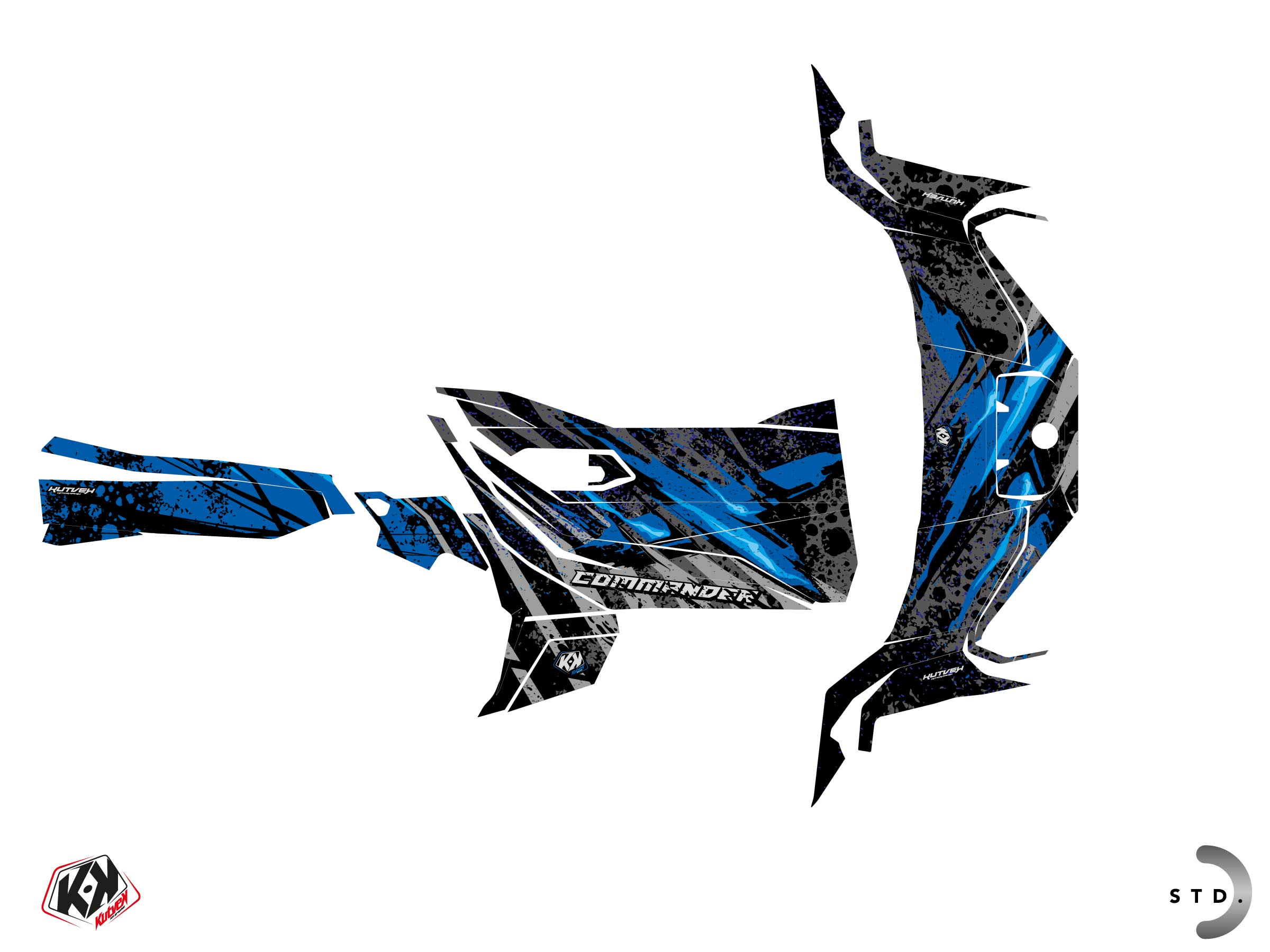 Offer you now for your UTV CAN-AM COMMANDER a graphic kit on the colors of EMBER Blue design.