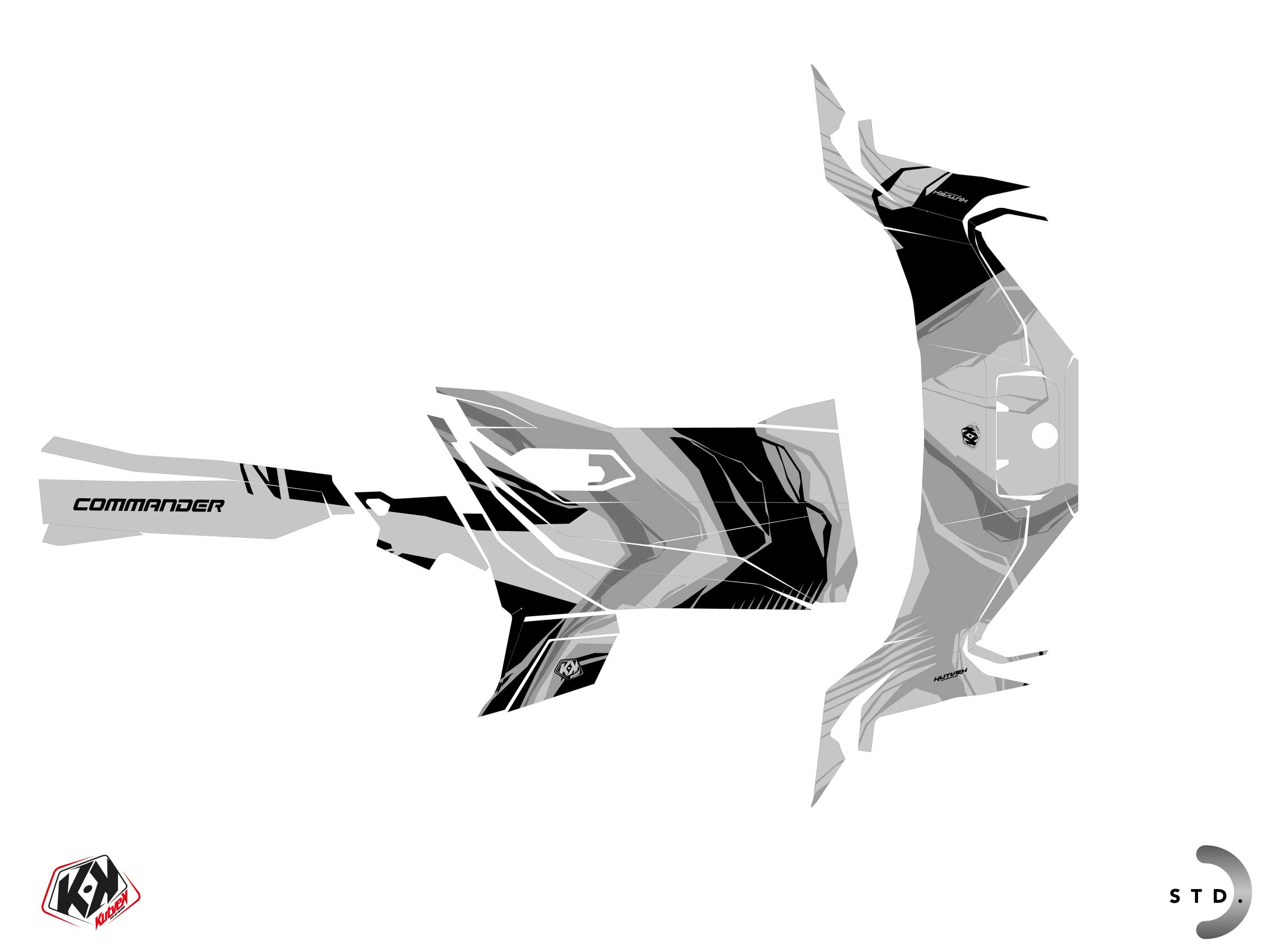 Offer you now for your UTV CAN-AM COMMANDER a graphic kit on the colors of KLIFF Grey design.