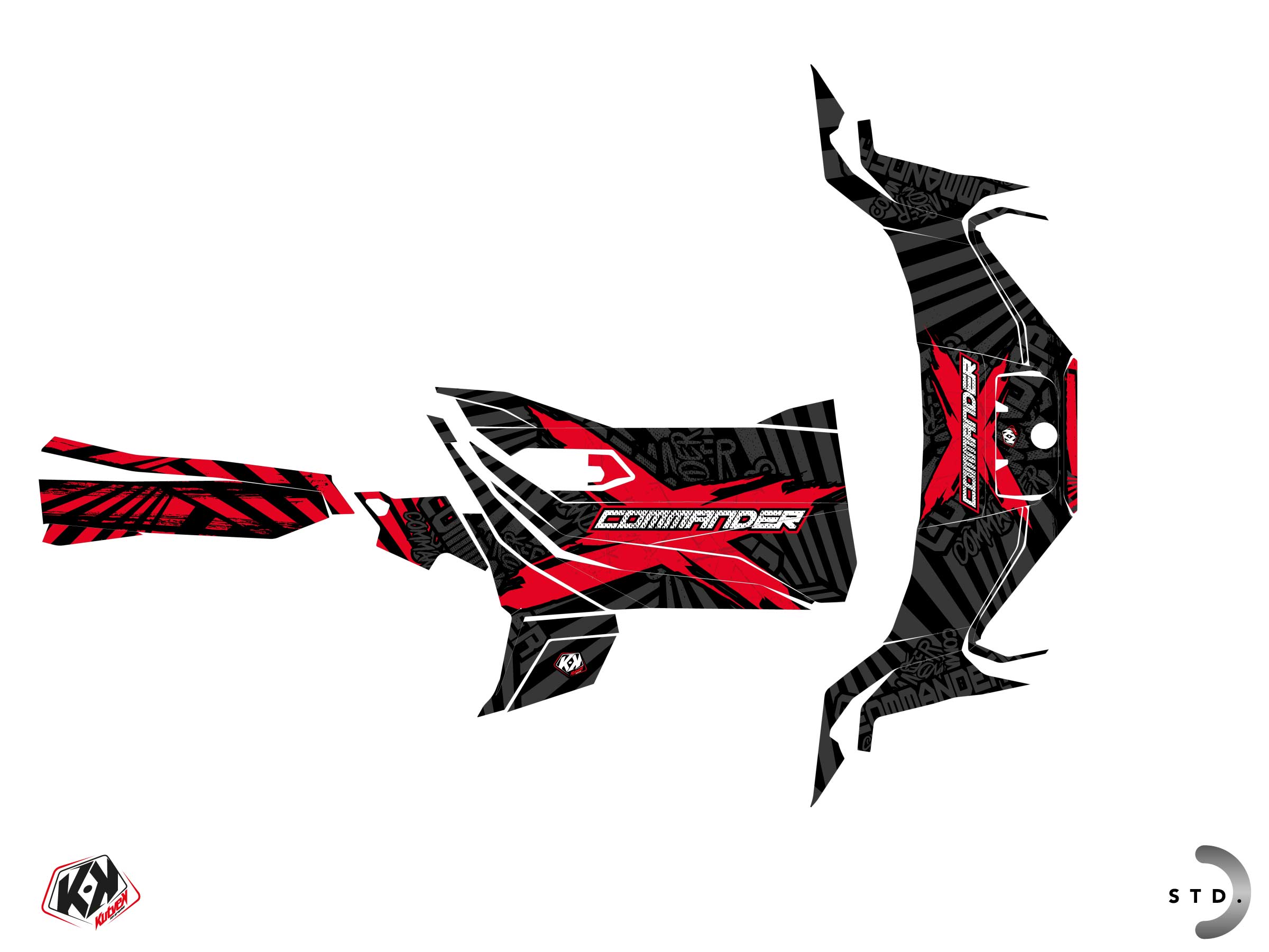 Offer you now for your UTV CAN-AM COMMANDER a graphic kit on the colors of KOLLECTOR Red design.