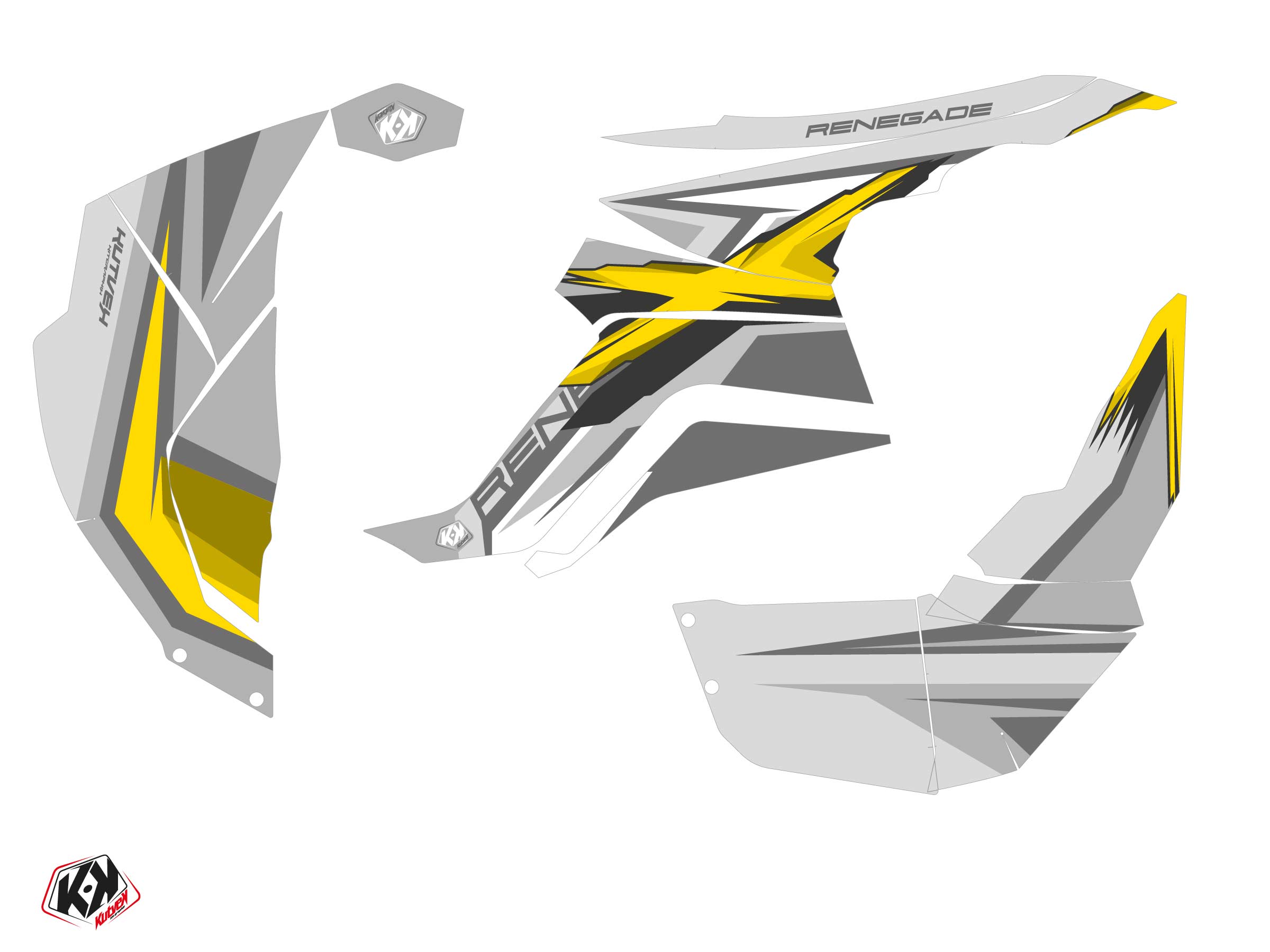 Offer you now for your ATV CAN-AM RENEGADE 110 a graphic kit on the colors of SPEAR Grey-Yellow design.