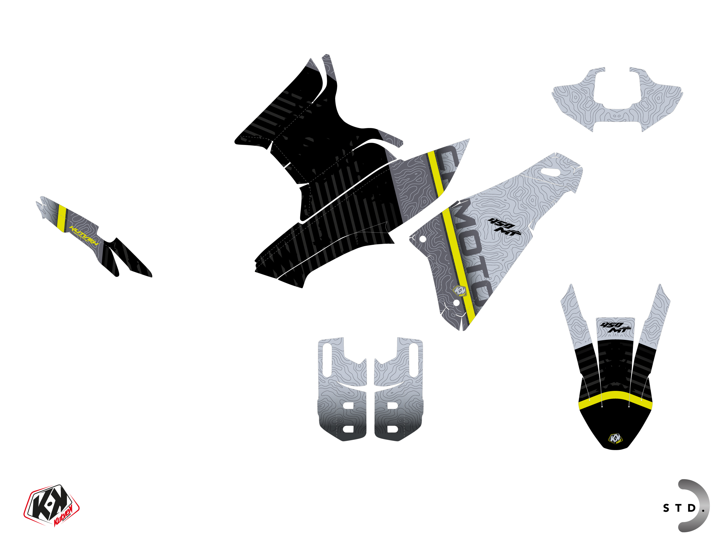 The CF MOTO MT 450 graphic kit includes :