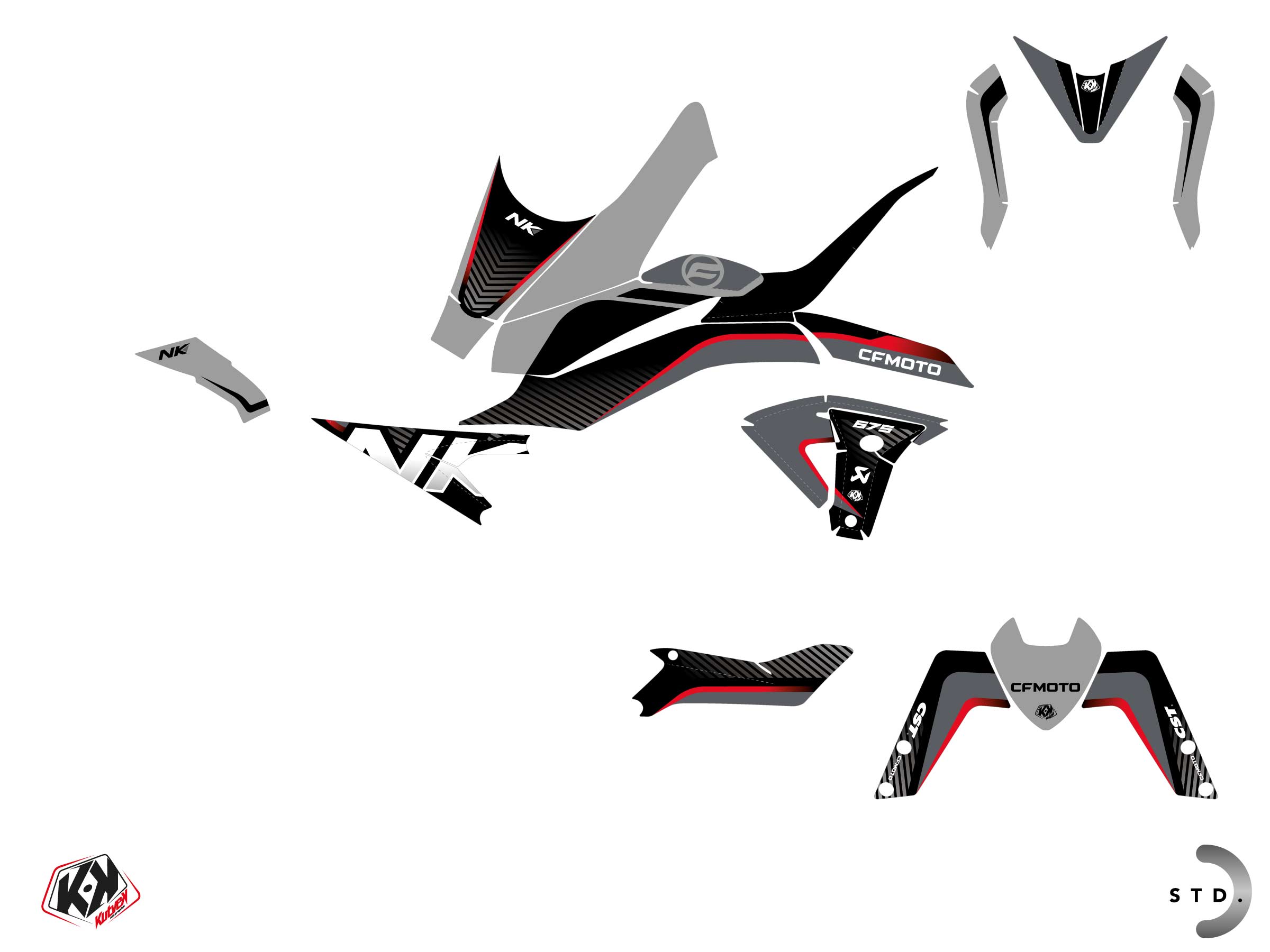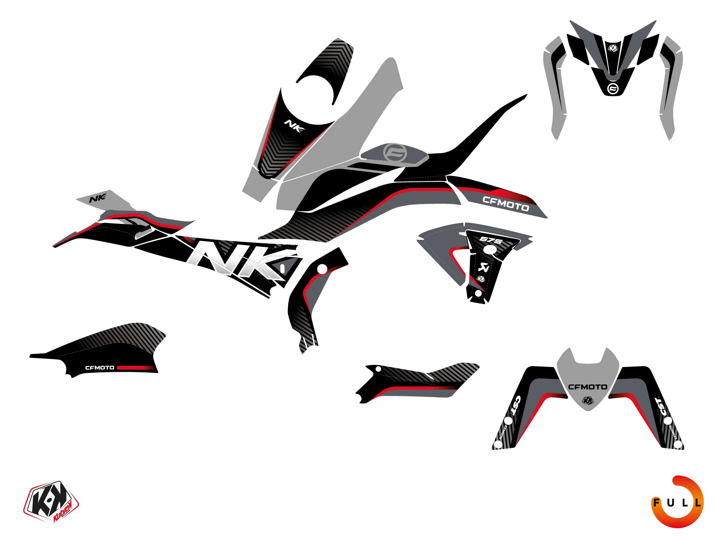 The CF MOTO NK 675 graphic kit includes :