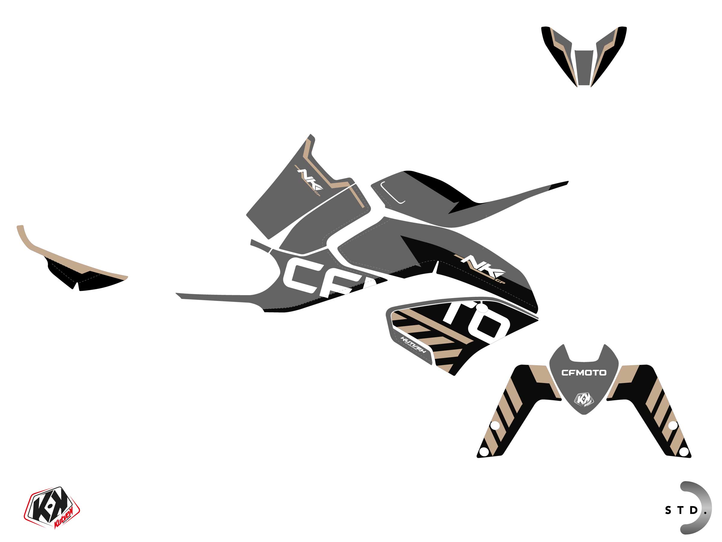 Offer you now for your Street Bike CF MOTO NK 800 a graphic kit on the colors of GP Black-Copper design.