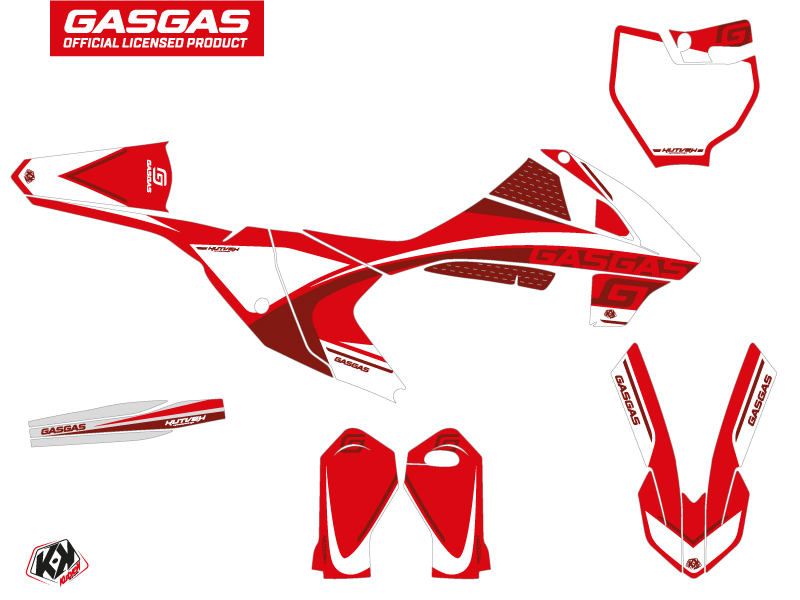 Offer you now for your GASGAS MC 65 Dirt Bike a graphic kit on the colors and brand name of RUSH Red.