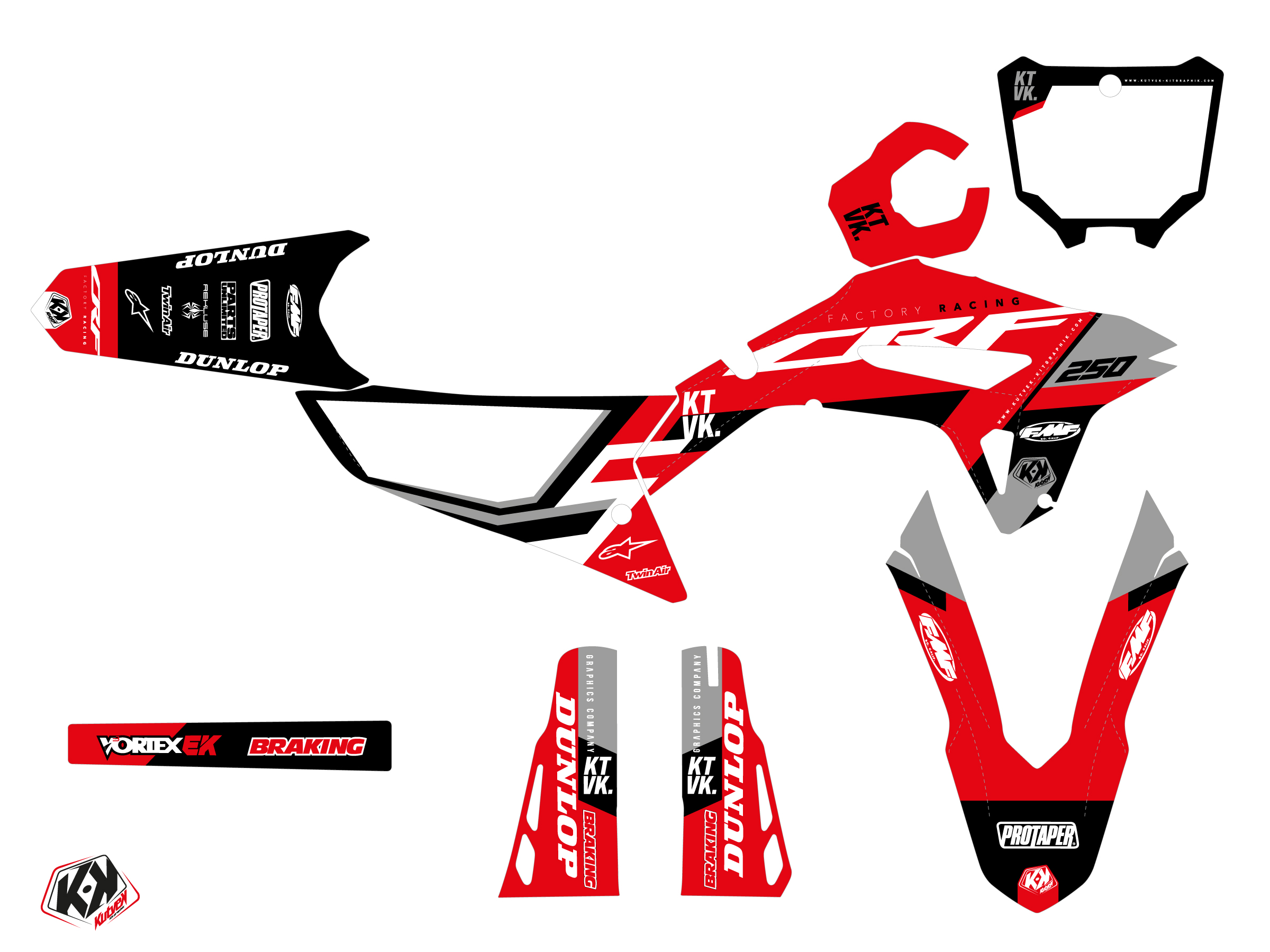 Offer you now for your Honda 250 CRF Dirt Bike a graphic kit on the colors and brand name of Rookie Red.