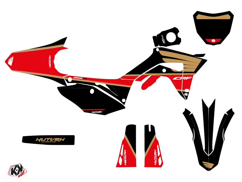 Offer you now for your Honda 250 CRF Dirt Bike a graphic kit on the colors and brand name of WING Gold.
