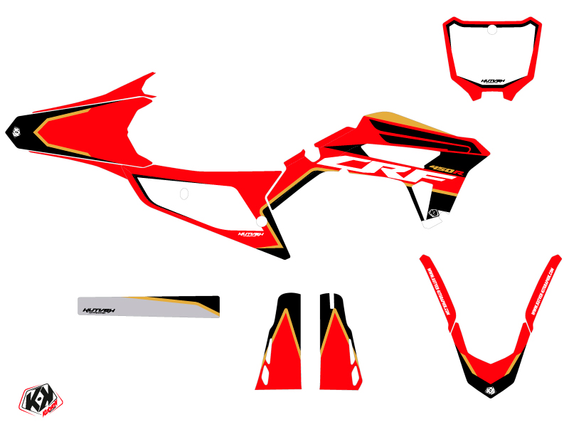 Offer you now for your Honda 450 CRF Dirt Bike a graphic kit on the colors and brand name of DYNA Gold.