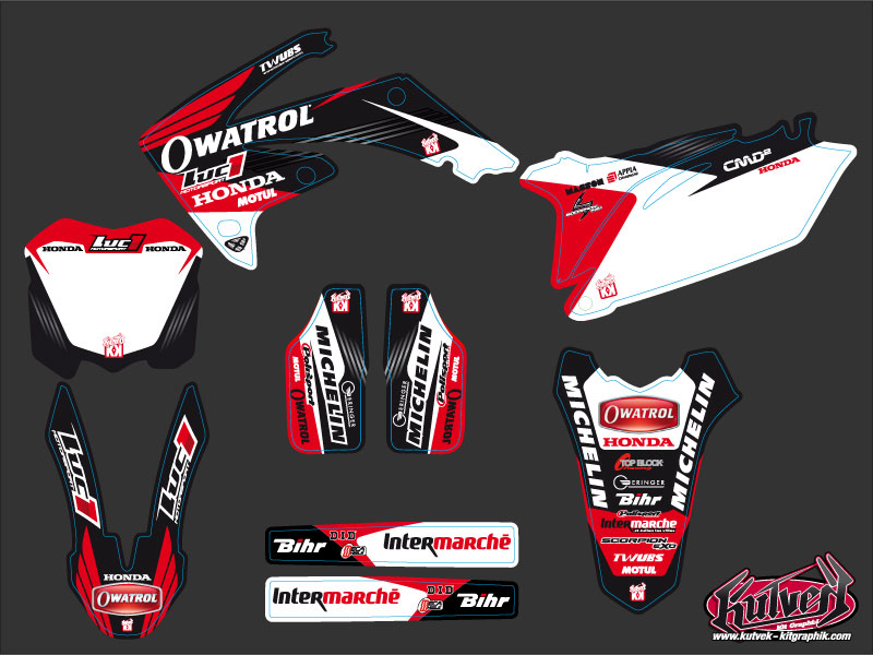 The graphic kit REPLICA TEAM LUC1 2012 allow you to adopt the colors of the Luc1 Team on your Dirt Bike Honda 450 CRF.