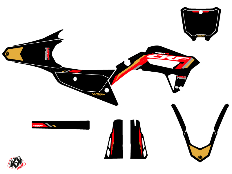Offer you now for your Honda 450 CRF Dirt Bike a graphic kit on the colors and brand name of WORKS Black.