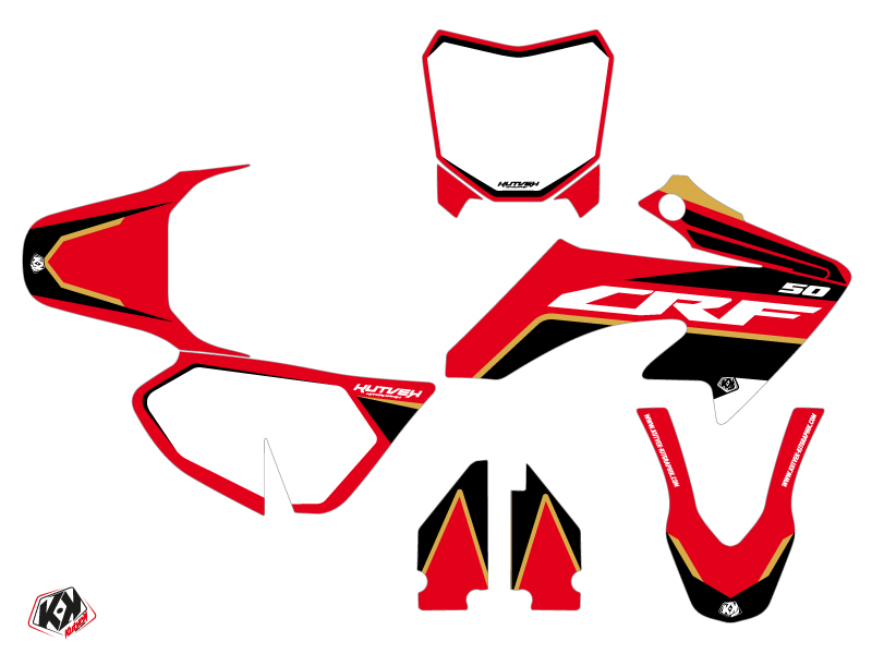 Offer you now for your Honda 50 CRF Dirt Bike a graphic kit on the colors and brand name of DYNA Gold.