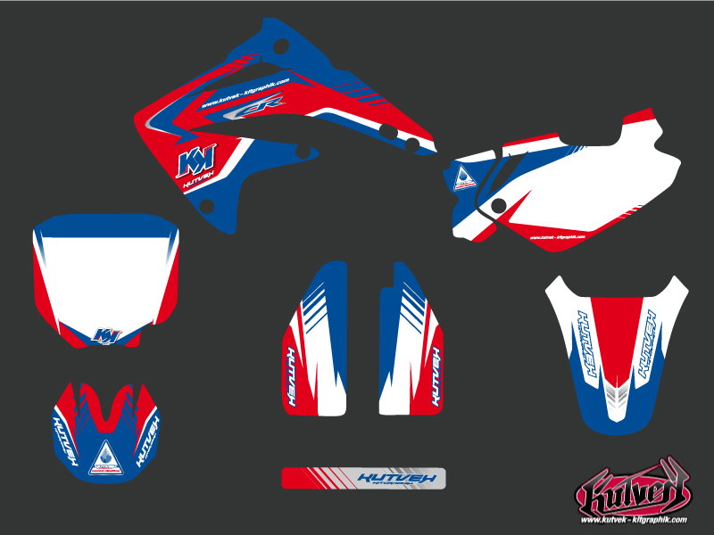 Offer you now for your Honda 85 CR Dirt Bike a graphic kit on the colors and brand name of PULSAR Blue.