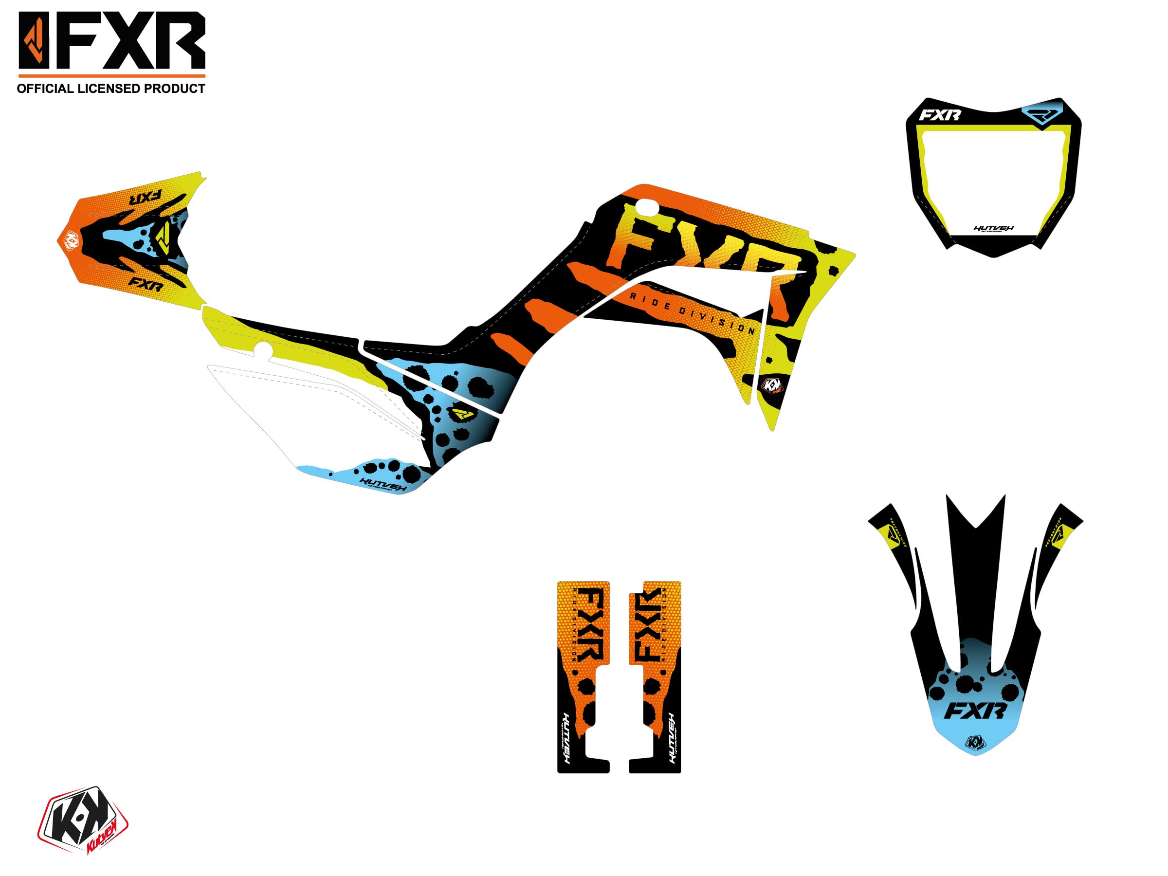 Offer you now for your Dirt Bike HONDA CRF 110 F a graphic kit on the colors of FXR DART FROG design.