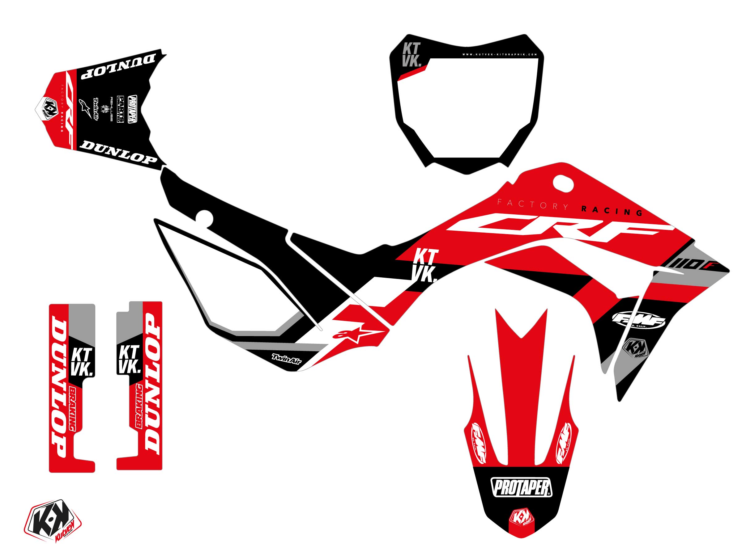 The HONDA CRF 110 F graphic kit includes :