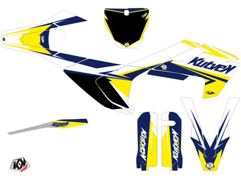 Offer you now for your Husqvarna TC 125 Dirt Bike a graphic kit on the colors and brand name of STAGE White Yellow.