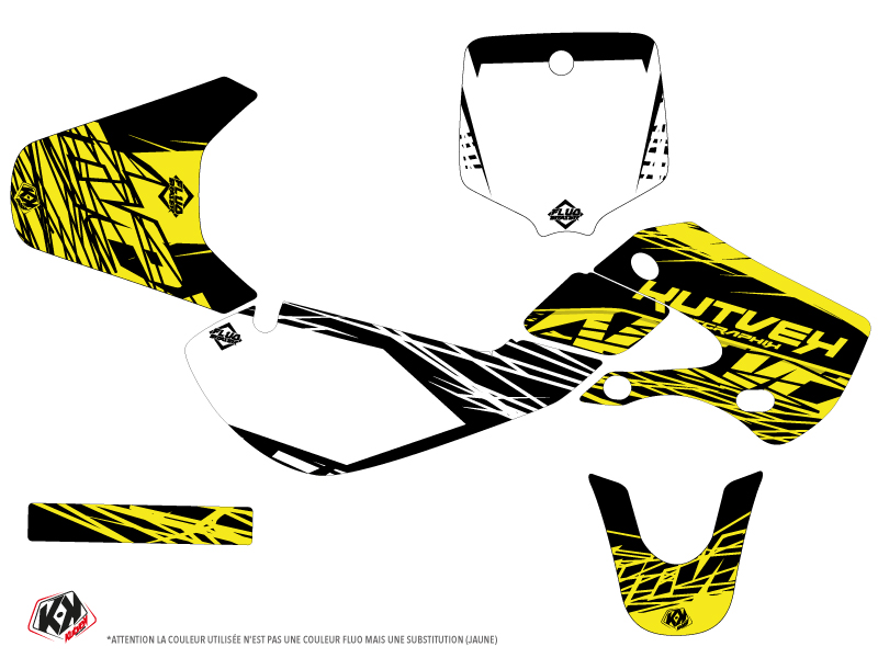 Offer you now for your Kawasaki 65 KX Dirt Bike a graphic kit on the colors and brand name of ERASER FLUO Yellow.