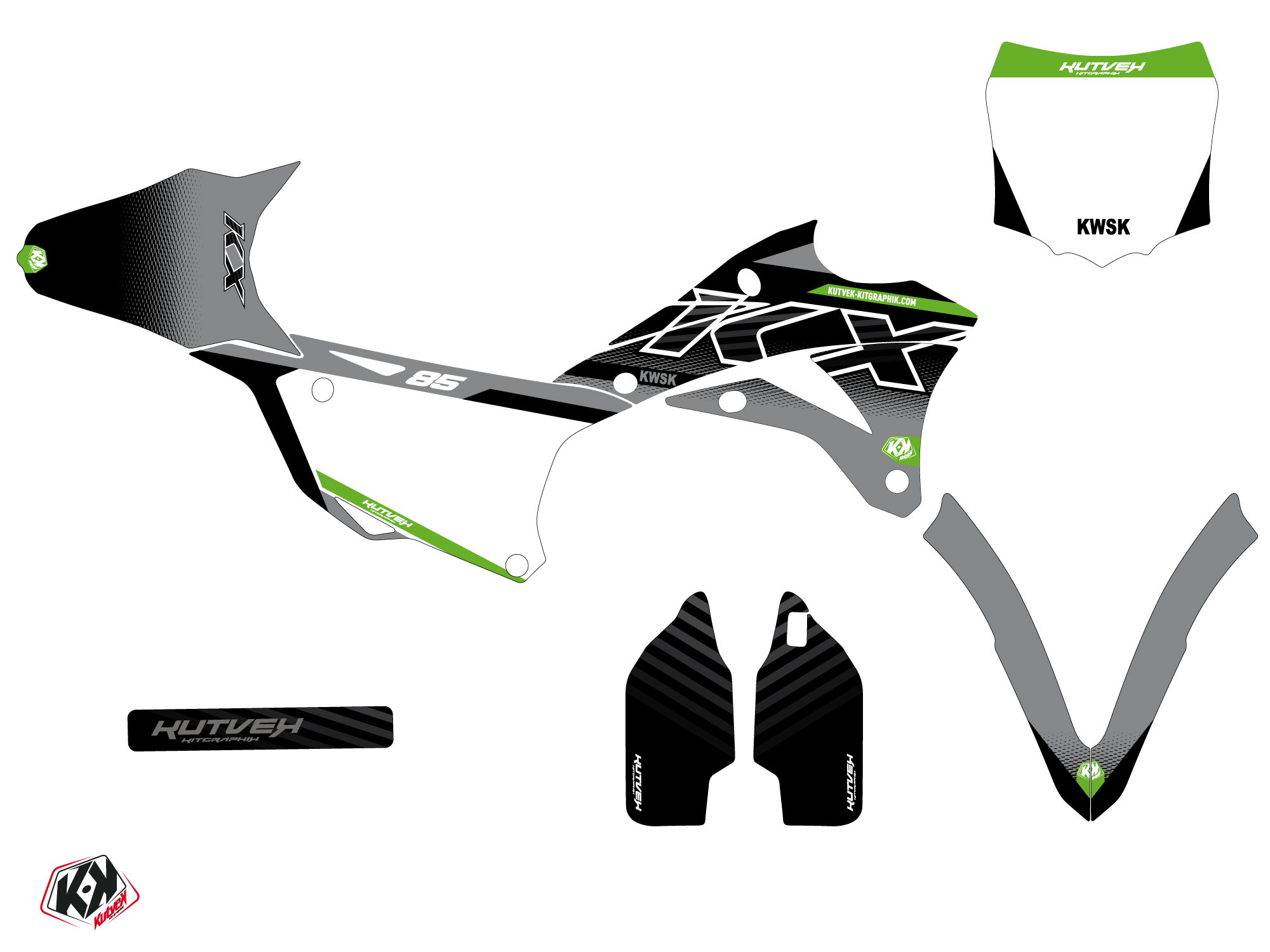 The KAWASAKI KX 85 graphic kit includes :