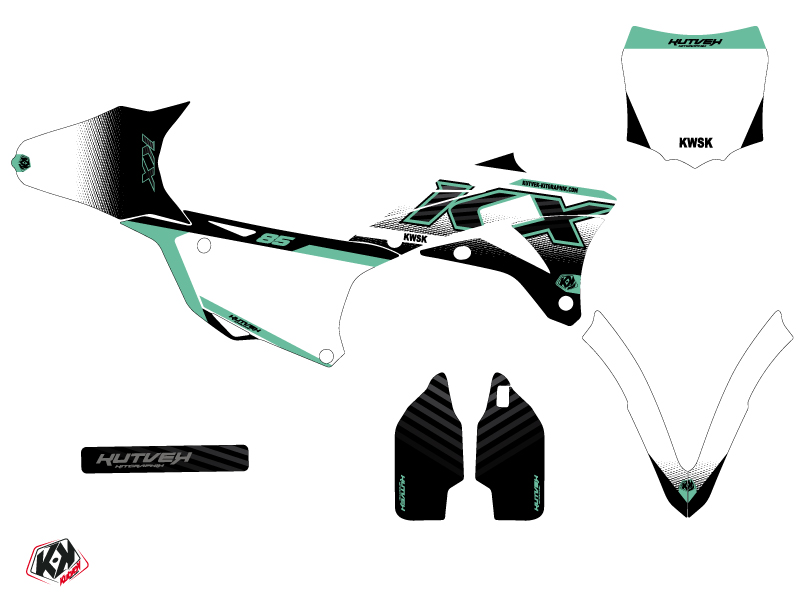 Offer you now for your Kawasaki 85 KX Dirt Bike a graphic kit on the colors and brand name of LIVE Turquoise.