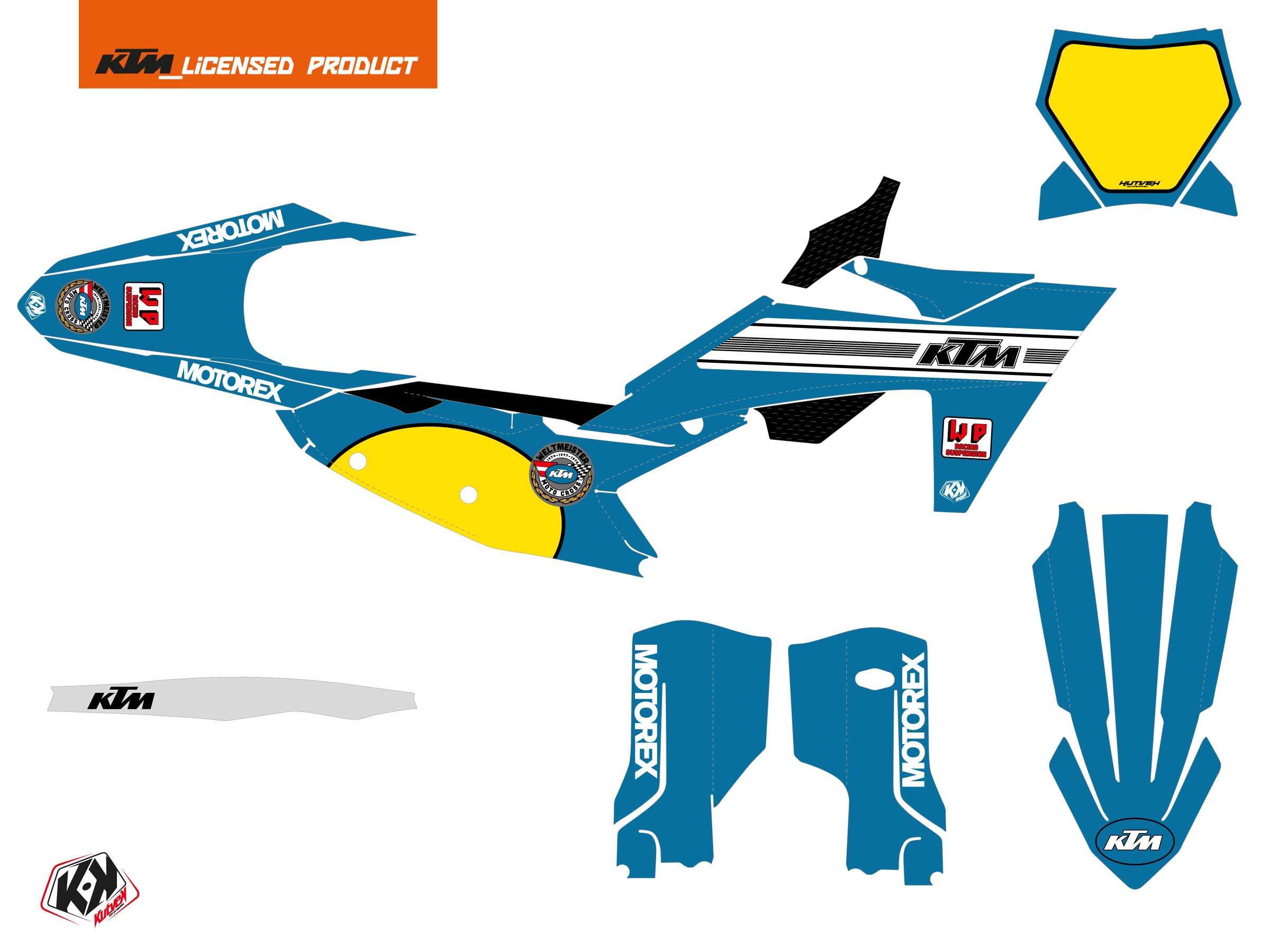 Offer you now for your Dirt Bike KTM SX 125 a graphic kit on the colors of WELTMEISTER Blue design.