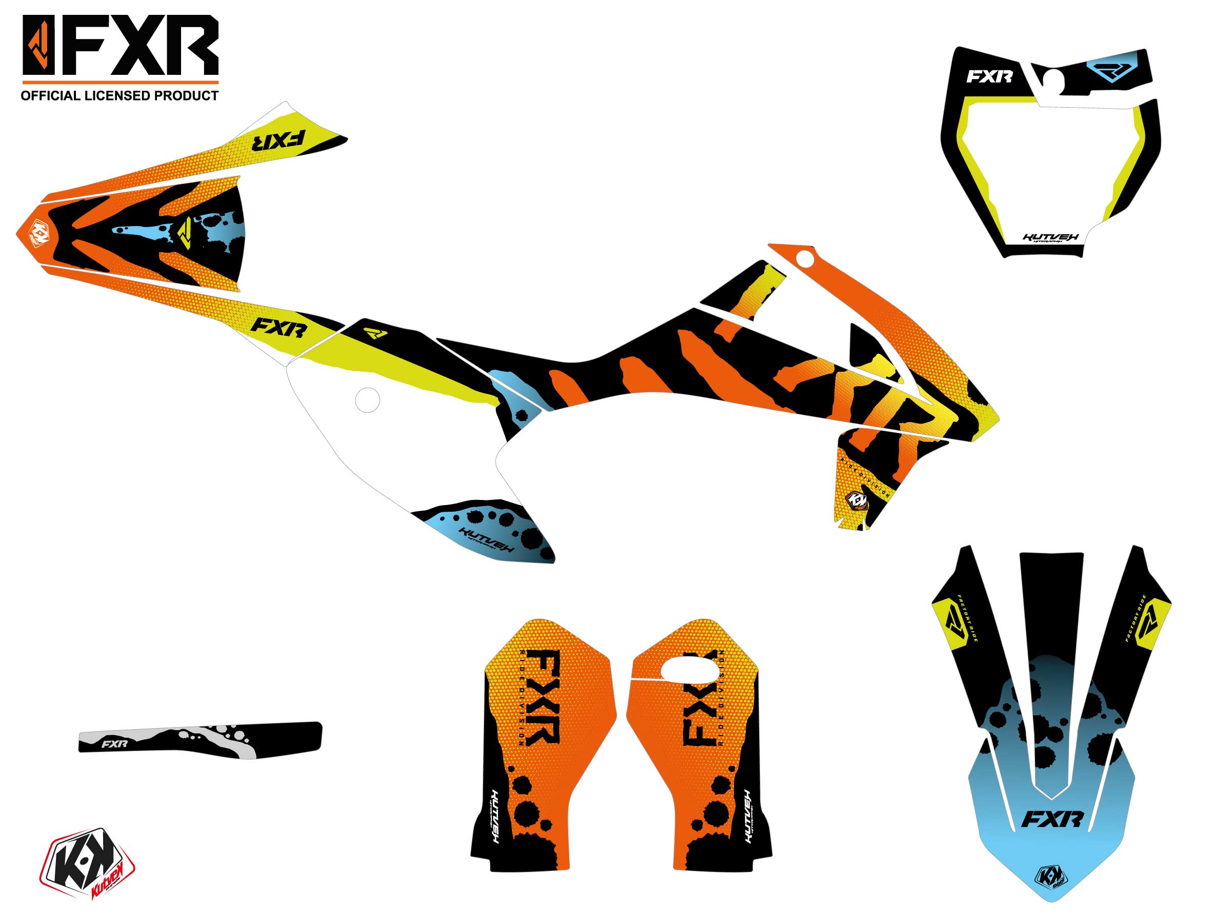 Offer you now for your Dirt Bike KTM SX E 5 a graphic kit on the colors of FXR DART FROG design.