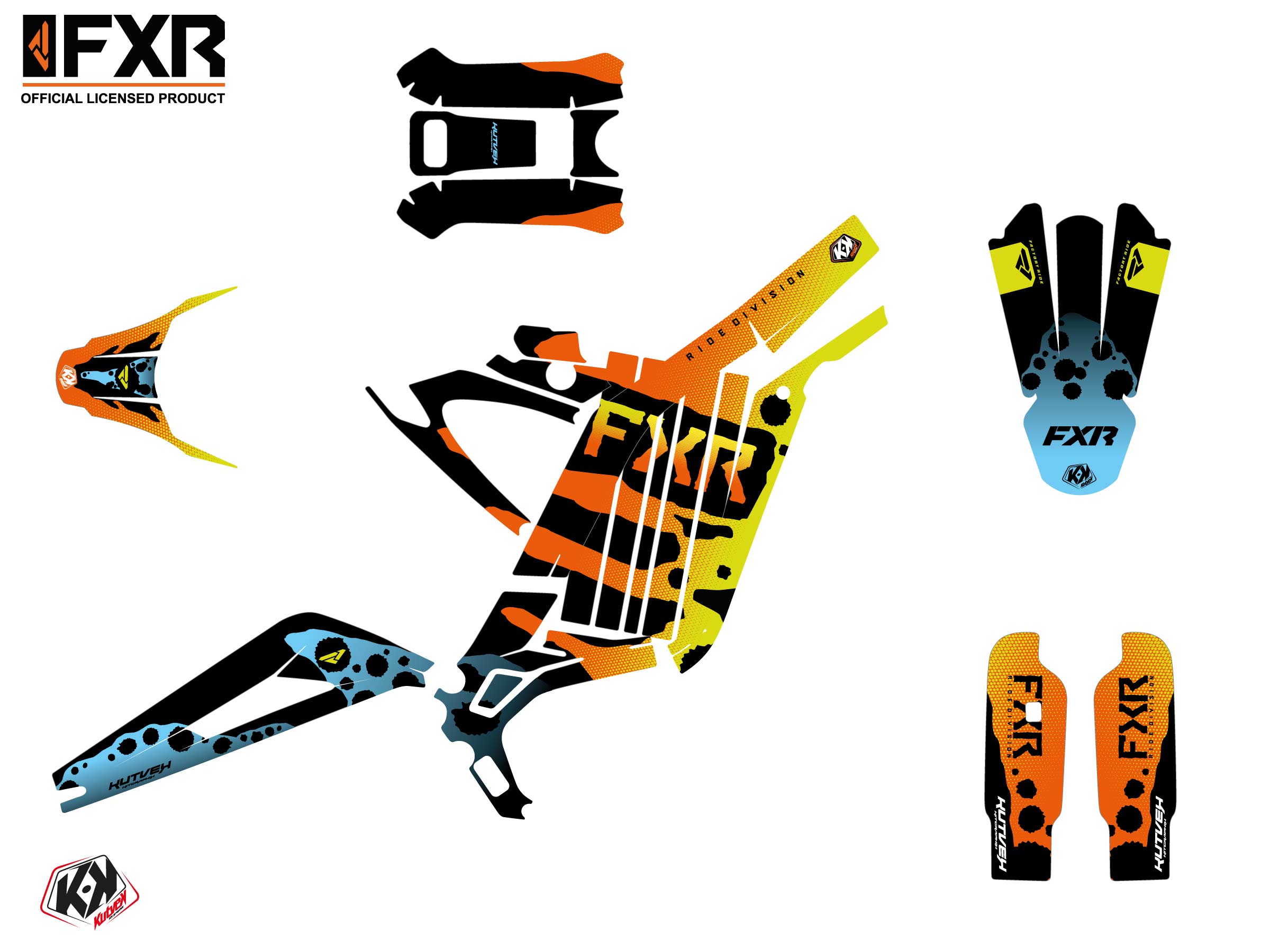 Offer you now for your Dirt Bike SUR-RON LIGHT-BEE HOMOLOGUÉE a graphic kit on the colors of FXR DART FROG design.